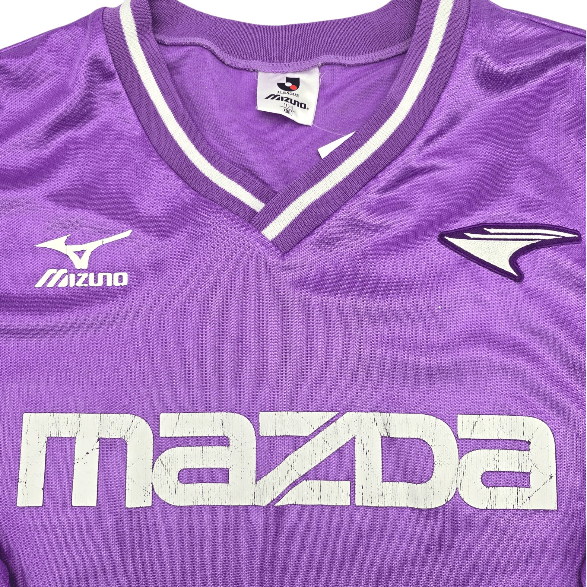 Information: Official Mizuno Sanfrecce Hiroshima training top, as worn by 'The Purple Archers' during the 1990s, when the side established themselves as one of Japan’s most competitive clubs in the early J.League era following the country’s transition to professional football. A fantastic vintage piece, ideal for a collection of your own or the perfect gift for any football fan. Asian market issue, so has internal wash labels for the region.