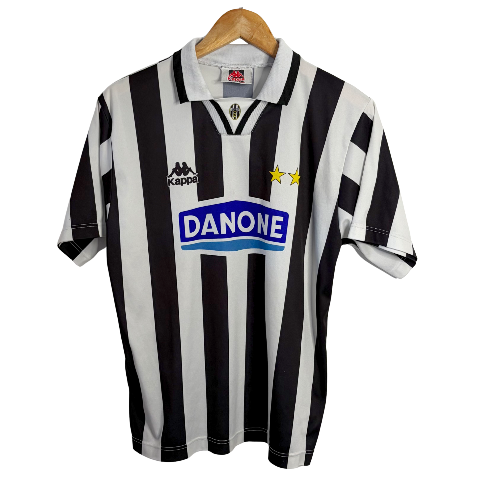 Iconic Juventus shirt by Kappa, as worn by a star-studded Serie A-winning squad including Del Piero, Baggio, Vialli, Ravanelli, Ferrara, Conte and Deschamps. This shirt is part of Kappa’s budget “Basic” collection and features a more simple construction with sublimated badges, lighter material construction and a different size label. Make no mistake, though, there is nothing basic about this absolute classic.