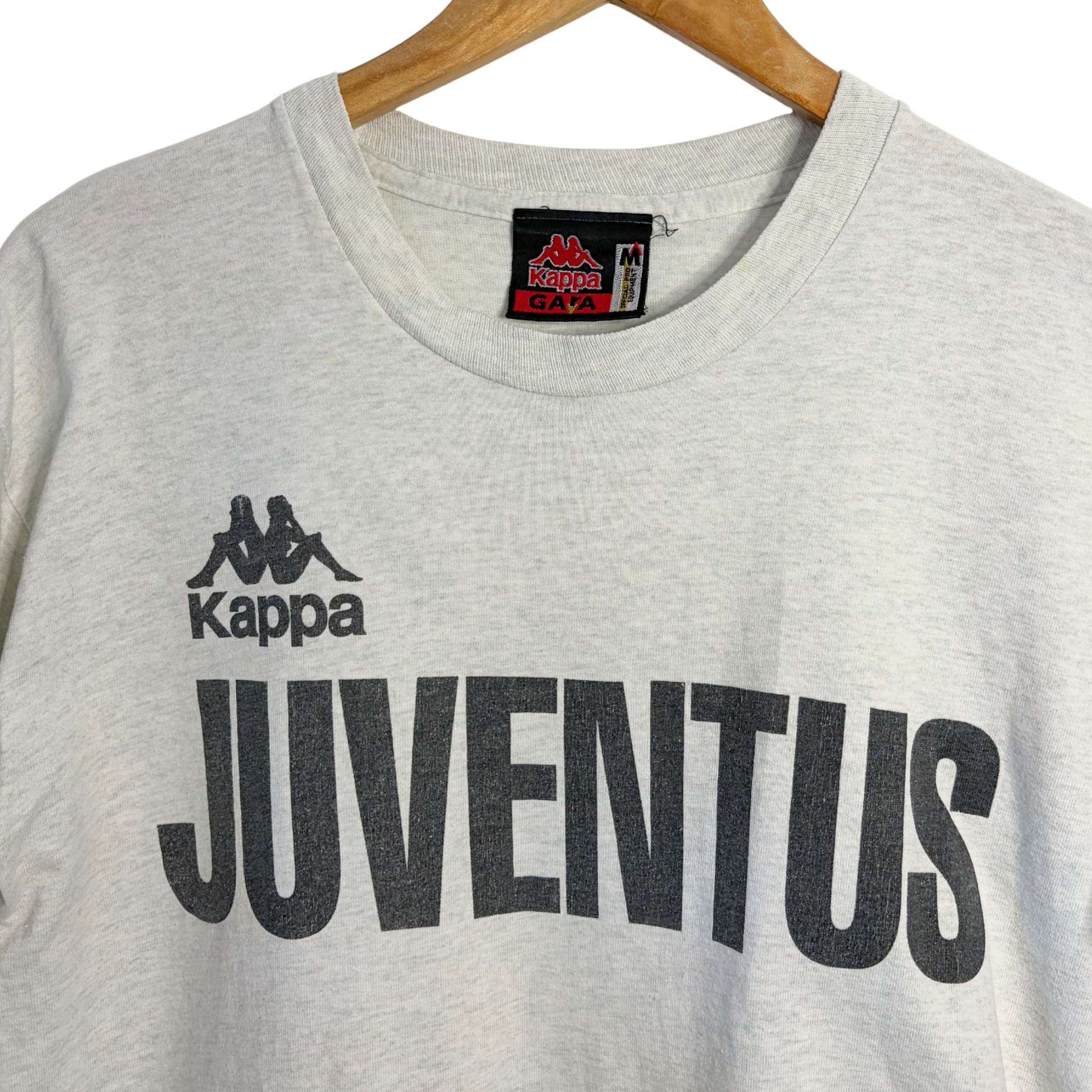 Elegant Kappa training tee, as worn when the Old Lady lifted the Champions League with a frankly insane squad featuring Del Piero, Conte, Ravanelli and Didier Deschamps. Features Juventus club text to upper front of the shirt, with old-school Juve logo to sleeve.